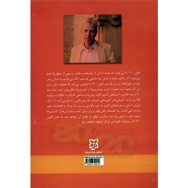 کتاب «زندگی به روش ۸۰/۲۰» نوشتهی «ریچارد کخ»، به کوشش «مریم تقدیسی» به فارسی برگردانده شده است. کار کمتر، نگرانی کمتر، موفقیت بیشتر و لذت بیشتر شعار اصلی این کتاب است. نویسنده در این کتاب به دو نظریهی مهم میپردازد. قانون تمرکز: کمتر بیشتر است و قانون پیشرفت: با تلاش کمتر میتوان به نتایج بیشتر دست یافت. در نظریهی اول، به این موضوع اشاره شده که ۸۰ درصد نتایج تاثیرگذار بر زندگی ما حاصل ۲۰ درصد فعالیتهای ماست؛ پس اگر یاد بگیریم چطور باید مسائلی را بشناسیم که برایمان از بیشترین اهمیت برخوردارند و میتوانند زندگیمان را پربارتر کنند و بر آنها تمرکز کنیم، متوجه میشویم که کمتر همان بیشتر است. در نظریهی دوم، اینکه چگونه میتوان با کم به بیشتر دست یافت، موردبحث است. این نظریه میگوید که چگونه میتوانیم با فعالیت و تلاش کمتر نهتنها در امور مالی زندگی بلکه در دیگر امور هم به موفقیت چشمگیر دست پیدا کنیم. این کتاب به شما نشان میدهد چطور میتوانید قانون کمتر بیشتر است و دستیابی به بیشتر با کمتر را در مورد خودتان، کار و موفقیت، مسائل مالی، روابطتان و ایجاد یک زندگی خوب و ساده به کار بگیرید و چگونه شما را در طرح نقشهای فعال برای ایجاد دگرگونی در زندگیتان یاری میکند. مدیرمسئول روزنامهی ایندیپندنت دربارهی این کتاب گفته است: «این کتابی است برای کسانی که میخواهند در زندگی خصوصی و کاری خود به موفقیت دست یابند. در این کتاب به روشهایی ساده و دقیق برای راهنمایی خواننده در زمینههایی از زندگی اشاره شده است که در آنها میتوان از اصل تفکر ۸۰/۲۰ بهرهمند شد. کتاب زندگی به روش ۸۰/۲۰ کتابی فوقالعاده کاربردی است که به خواننده نشان میدهد چطور باید در زندگی تنها بر مسائل حائزاهمیت تمرکز کند. اگر شما هم از آن دسته کسانی هستید که از مسابقهی زندگی خسته شدهاند و پذیرای نگرشی جدید نسبت به زندگی هستند، مطالعهی این کتاب را اکیدا به شما توصیه میکنم.» کتاب حاضر را نشر «نیک فرجام» منتشر و روانهی بازار کتاب کرده است.